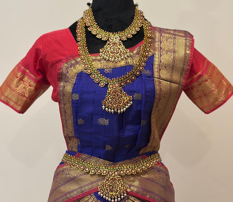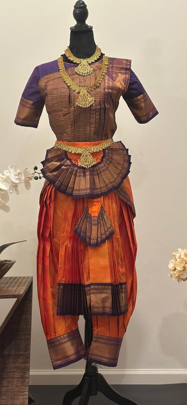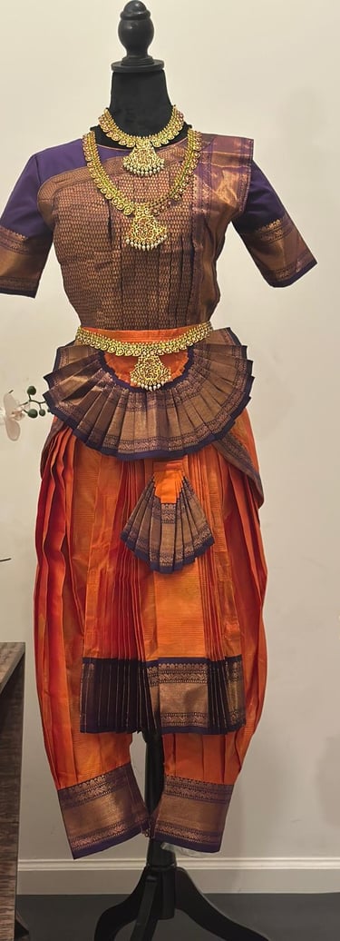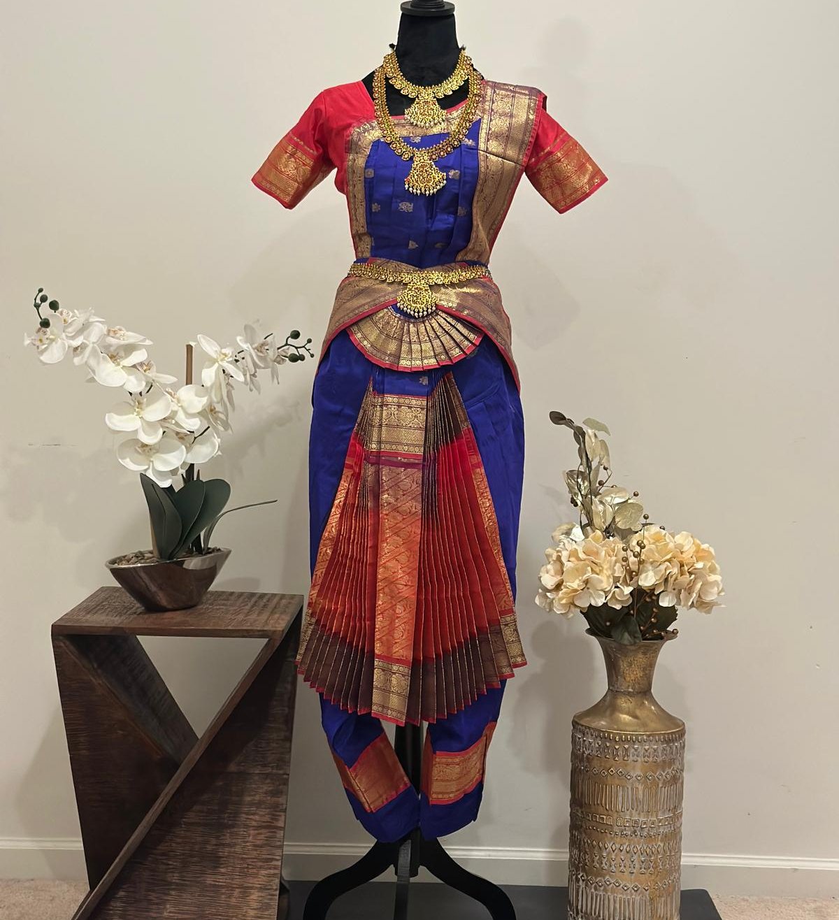 We use traditional silks, cottons, and brocades for authentic dance dresses.